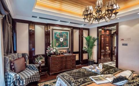 實木門的外型和顏色與居室古樸高雅的樣式相一致。其獨到的外型感令寢室更顯豪華大氣。
