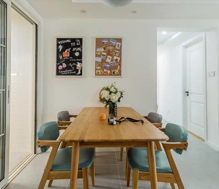 餐廳布置了一張?jiān)痉叫尾妥溃鸵未钆淞怂{(lán)色的坐墊,坐著特別舒服,搭配起來(lái)不會(huì)讓人覺(jué)得單調(diào),特別耐看。旁邊移動(dòng)門進(jìn)去就是廚房了,煮好的飯菜可以很快端出來(lái),方便用餐。其實(shí),不管是橫豎擺放,都沒(méi)有任何影響。一家人開開心心坐在一起用餐,很幸福!包括墻面安裝的吊燈,墻上懸著的裝飾畫,可以起到很好的裝飾效果,顯得很溫馨呢!