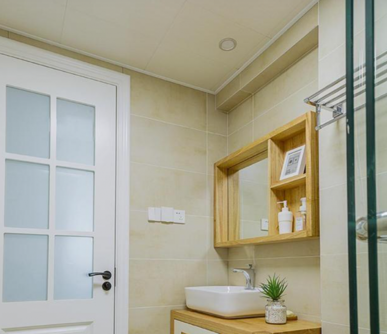 這是公衛(wèi),空間合適做了干濕分離,主要是洗澡的時(shí)候不會(huì)把整個(gè)空間給弄濕了,做保潔會(huì)方便很多。并且搭配的浴室柜,顯得很個(gè)性,而且臺(tái)上盆,顏值很高呢!