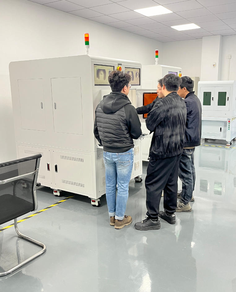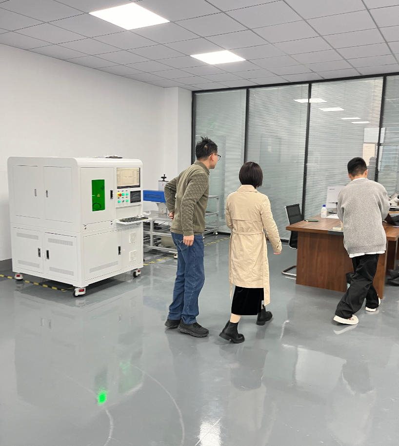 考察期間,客戶一行先后走進生產車間、裝配調試區、成品展示區,近距離查看設備生產全流程,詳細了解我司在激光精密剝離領域的技術研發、生產工藝、質量管控及產品應用場景。現場工作人員對設備的核心優勢、性能參數、操作流程及行業解決方案進行了全面講解與實操演示,重點展示了設備高精度、非接觸、不傷基材、效率穩定、適配多品類線材等核心特點。